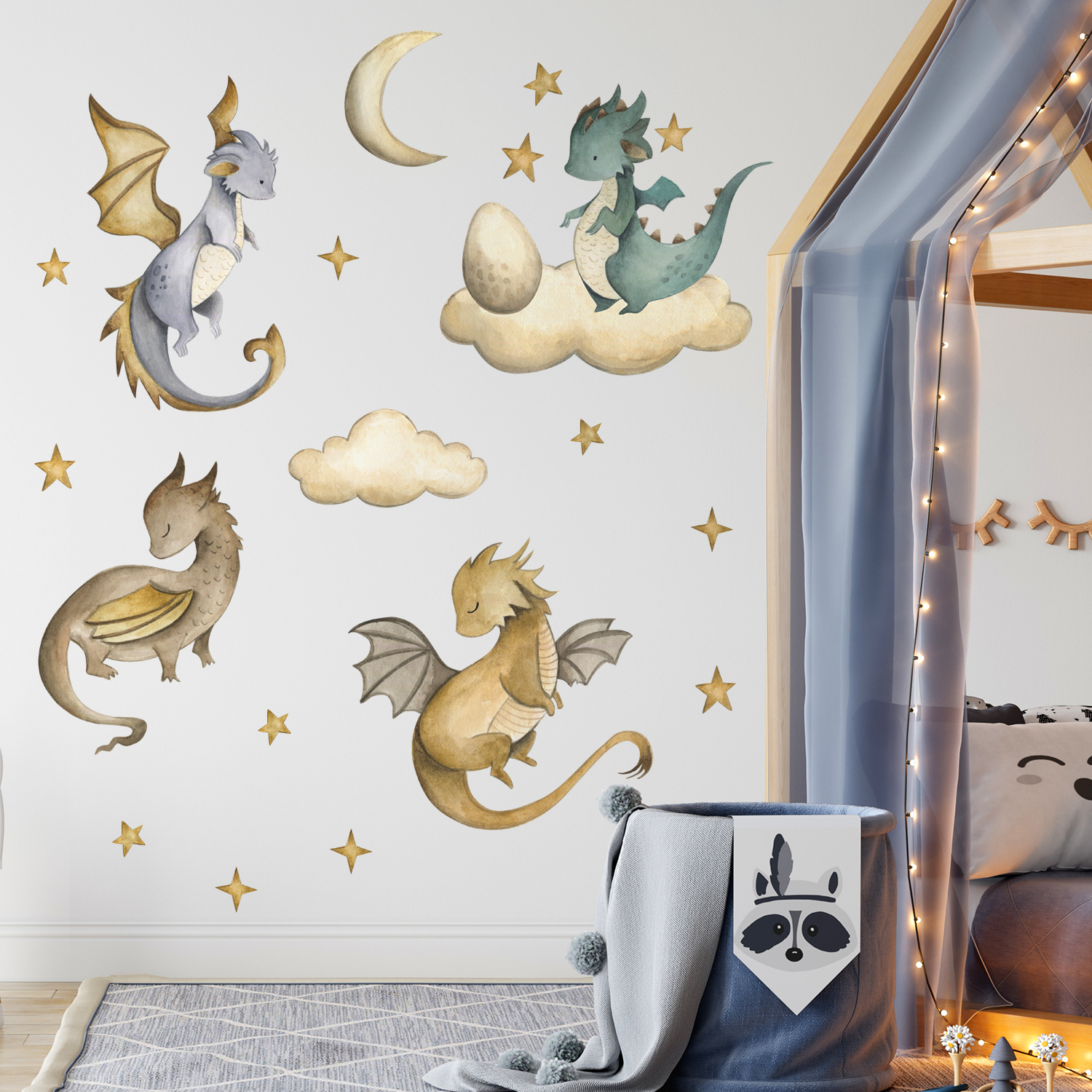 Samolepka na zeď - Draci XL Vypravte se se svými dětmi do říše draků! Krásně zpracovaná samolepka na zeď vysoké kvality se může vyjímat i na vašich stěnách.Udělejte radost dětem a efektivně jim zkrášlete dětský pokojíček! Tato samolepka je tvořena archem o velikosti 60x90 cm, kde jsou naskládané...