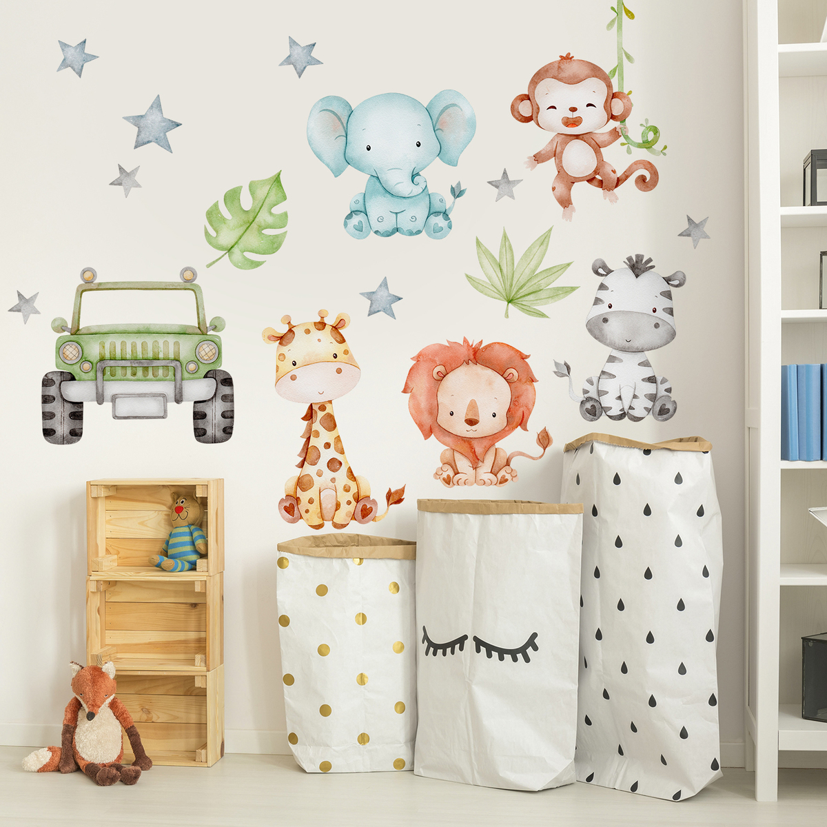 Dětská samolepka na za zeď - Safari babies XL Zvířátka ze Safari jsou velmi oblíbená, a proto jsme připravili tuto roztomilou samolepku na stěnu! Samolepky tiskneme na průhlednou matnou fólii, která jednoduše splyne se stěnou. Samolepku zpracováváme na arch o velikosti 98 x 65 cm. Na tomto archu...