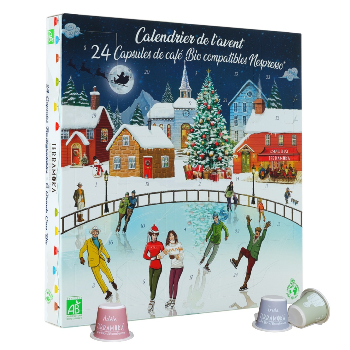 Adventní kalendář - Nespresso, zimní edice.Náš adventní kalendář se skládá z 24 kávových kapslí kompatibilních s Nespressem. Vyzkoušejte jedinečnou možnost a ochutnejte nejluxusnější kávy z Francie. Ručně pražená káva - pomalou metodou při teplotě 200 °C ve východní Francii. 100% Organic...