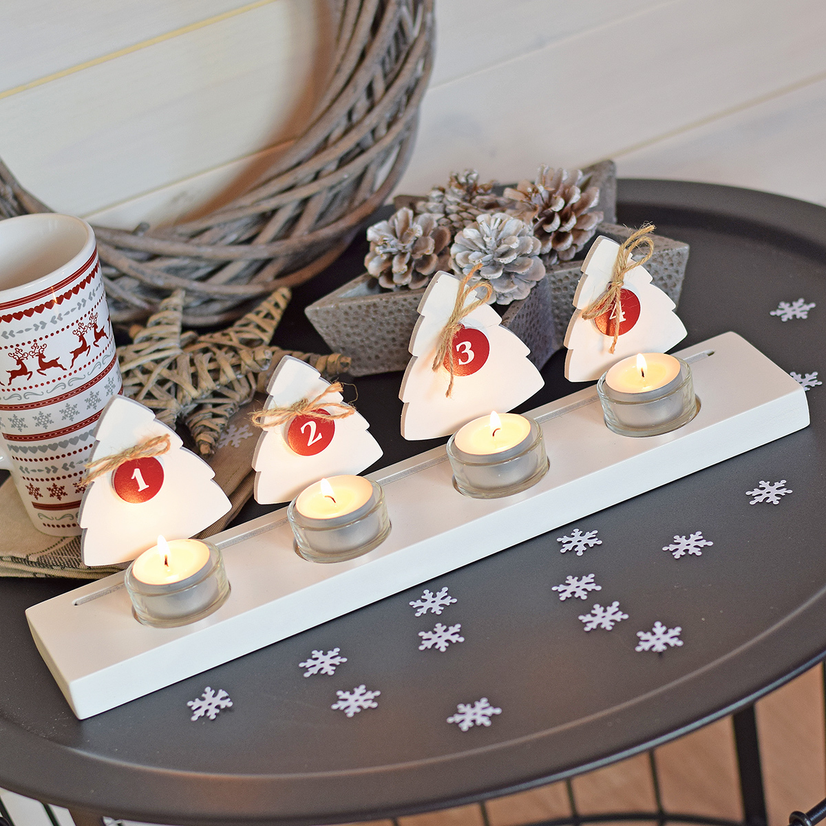 Krásný adventní svícen se stromečky. Světlo svíček v kombinaci tohoto vánočního svícnu je opravdu kouzelné. Skleněné kalíšky ani svíčky nejsou součástí produktu. velikost: 39 x 12 cm przeczytaj całość