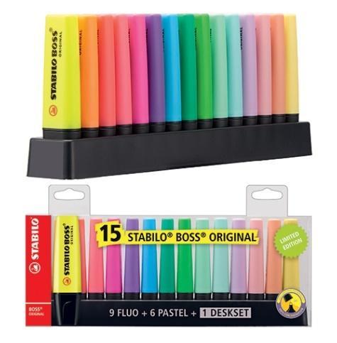 Zvýrazňovač STABILO BOSS ORIGINAL sada 15 ks deskset
