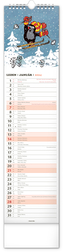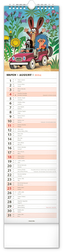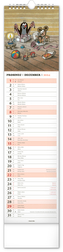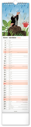 Praktický kravatový formát kalendáře s ilustracemi Zdeňka Milera. V kalendáři je rovnocenně zahrnuta čeština a slovenština, ilustrace doplňují česká a slovenská jména, svátky a památné dny a fáze měsíce. Každý den má prostor pro poznámky, víkendové dny jsou barevně odlišené od pracovních. przeczytaj całość