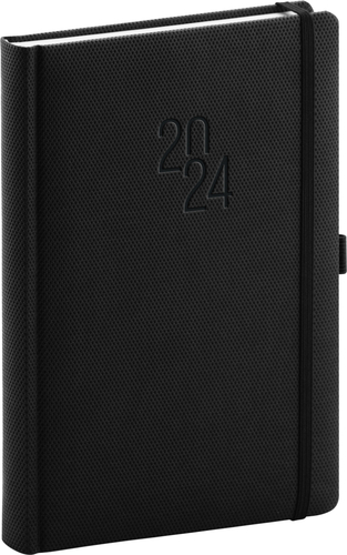 Luxusní denní diář Diamante 2024 v černé barvě. Povrch s jemnou strukturou připomínající výbrus diamantu je vhodný pro všechny typy ražeb. Diář má zakulacené rohy, poutko na tužku a elastickou gumičku, sloužící k pevnému uzavření. • kalendárium od prosince 2023 • měsíční plánovací kalendář 2024...