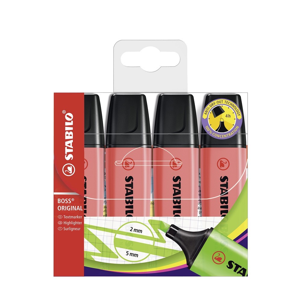 STABILO BOSS ORIGINAL 4 ks Pouzdro červená