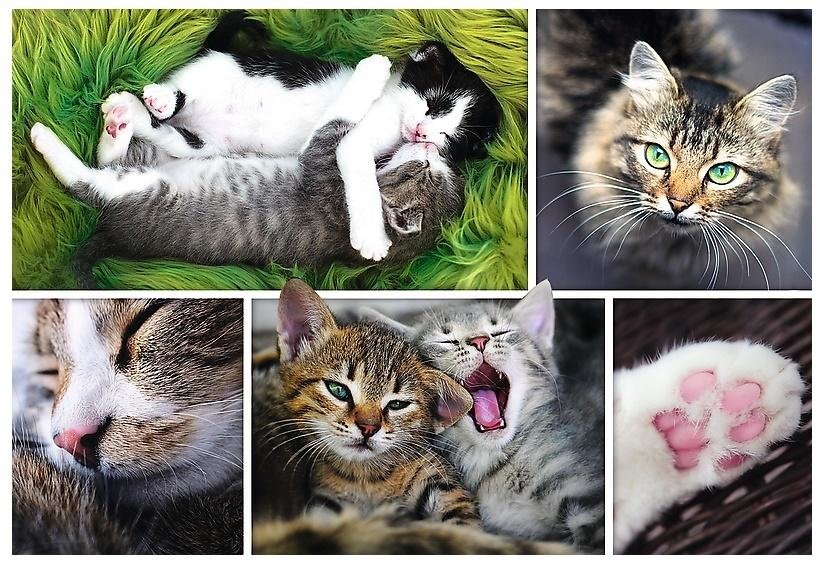 Puzzle 1500 elementów przedstawiające wspaniały kolaż obrazów z kotami. Puzzle te mogą być świetnym prezentem dla miłośników kotów. Po ułożeniu powstanie obrazek o wymiarach 85x58 cm. Wysoką jakość, nasycenie kolorów i bezpieczeństwo układania zapewnia wykorzystanie materiałów ekologicznych.. przeczytaj całość