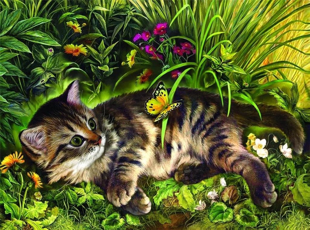 Puzzle 1000 Zabawa kotka w ogrodzie