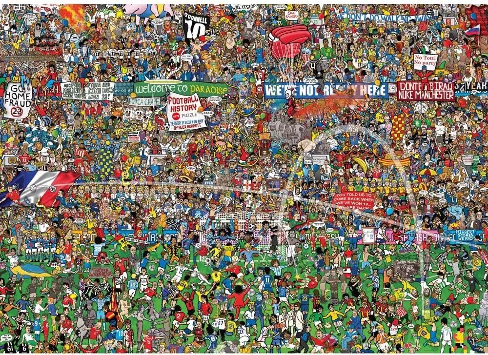 Dokonalá slavnost pro všechny fotbalové fanoušky a experty! Anglický výtvarník Alex Bennett podal senzační svědectví svého nadšení pro sport tímto monumentálním a detailně propracovaným obrazem historie fotbalu przeczytaj całość