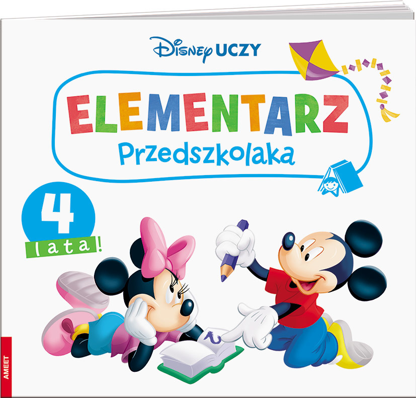 Elementarz • przedstawienie liczb od 1 do 10, liczenie do 10, dodawanie na obiektach w zakresie 5• wprowadzenie liter, rozpoznawanie ich ksztaltu oraz wyszukiwanie danej litery w wyrazach• porównywanie podstawowych kształtów, jak np. koło, trójkąt, kwadrat czy prostokąt, i ich rysowanie• nauka przez zabawę w towarzystwie bohaterów ze świata Disneya• wsparcie rozwoju słownictwa dziecka