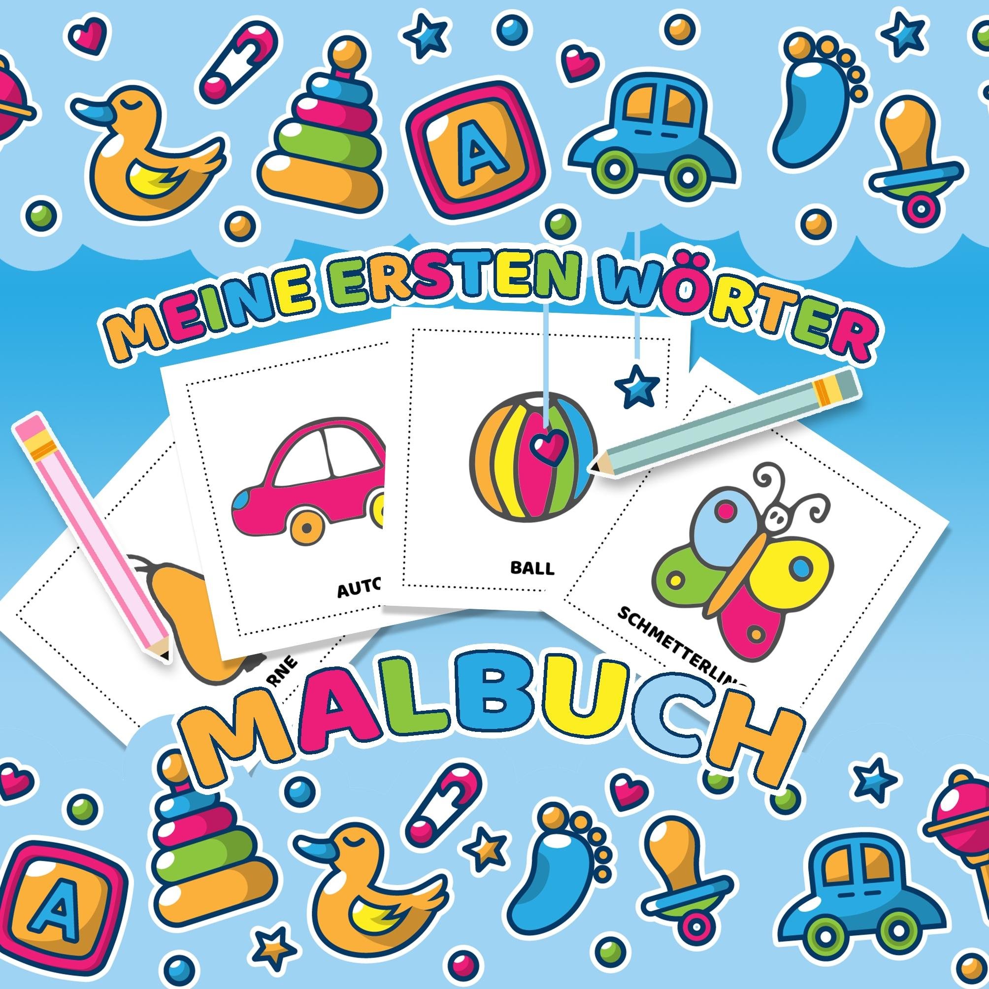 Meine ersten Wörter Malbuch - Das Kinderbuch mit einfachen Malvorlagen für Kleinkinder (niemiecki)