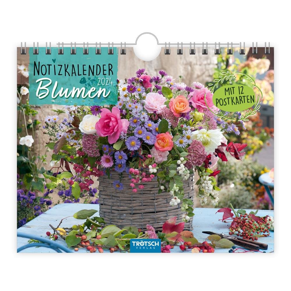 Trötsch Notizkalender Querformat Notizkalender Blumen 2024 - mit 12 Postkarten (niemiecki)
