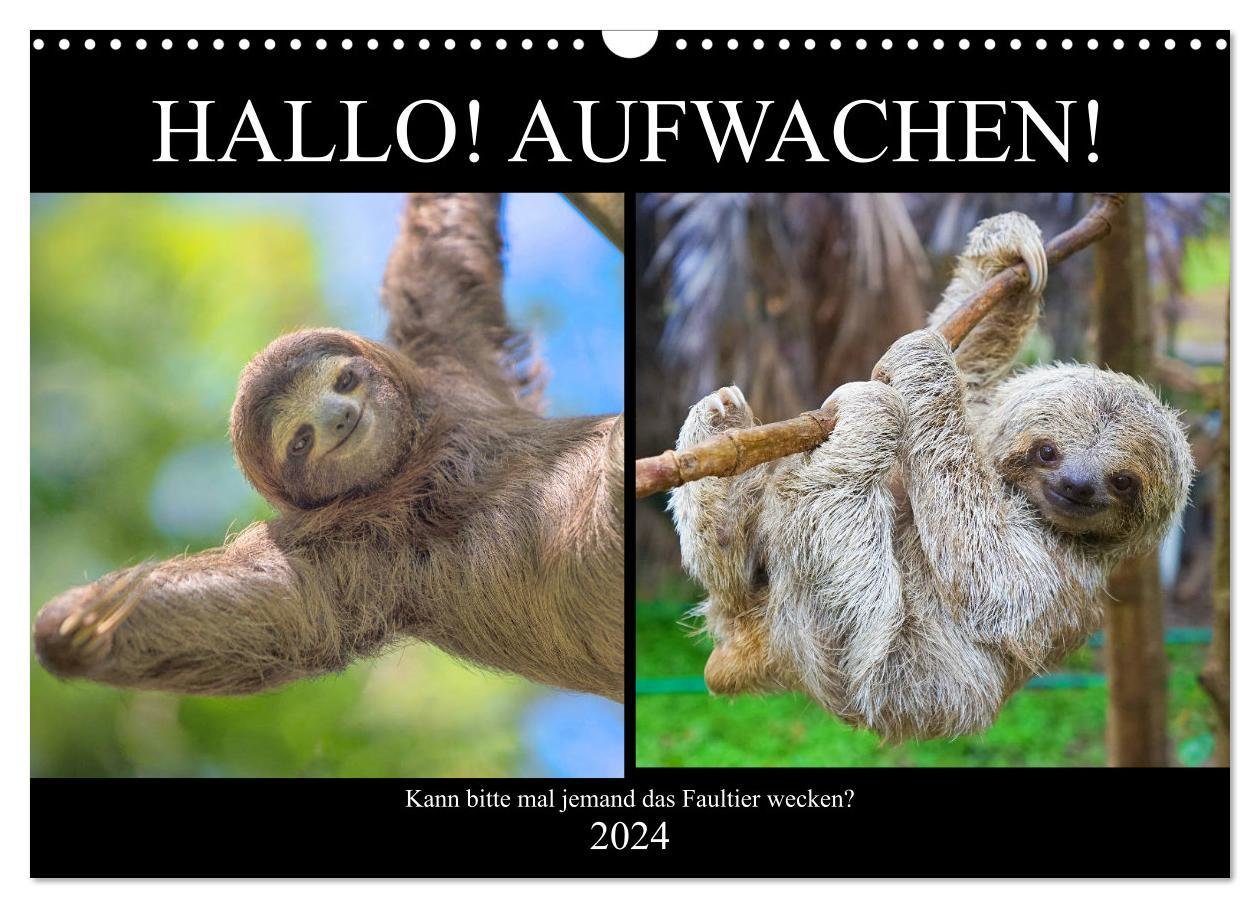 Hallo! Aufwachen! Kann bitte mal jemand das Faultier wecken? (Wandkalender 2024 DIN A3 quer), CALVENDO Monatskalender (niemiecki)