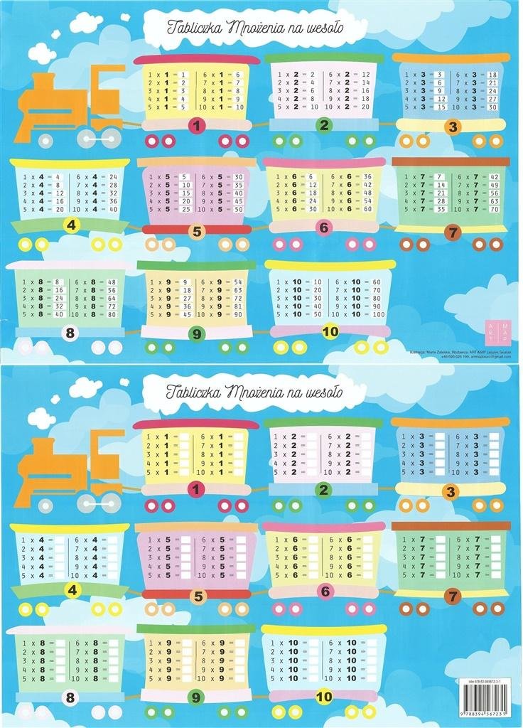 Podkładka dwustronna laminowana A2 tabliczka mnożenia POCIĄG