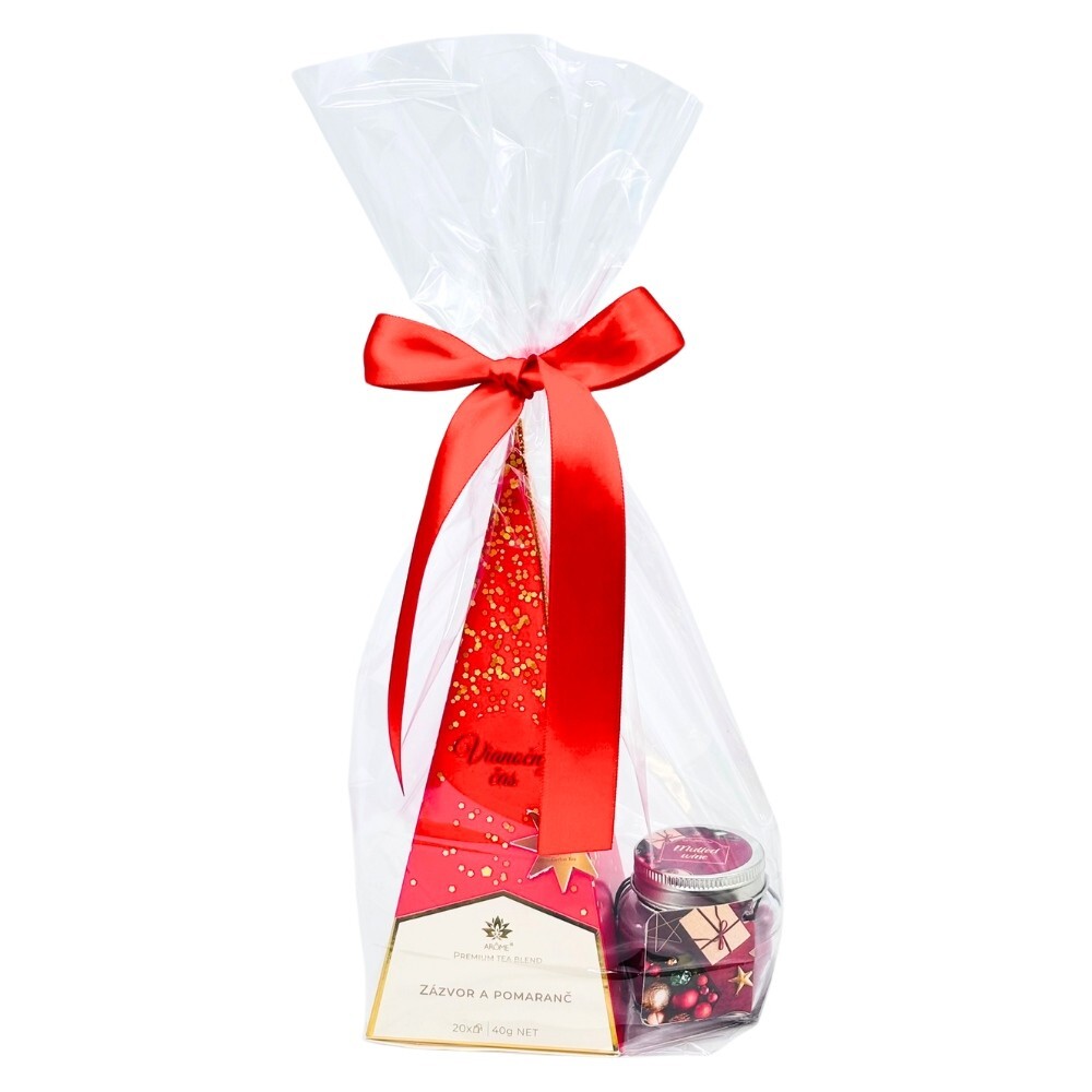 HOME ELEMENTS Vánoční set svíčka 28g, čaj černý se zázvorem a pomerančem Třpytky