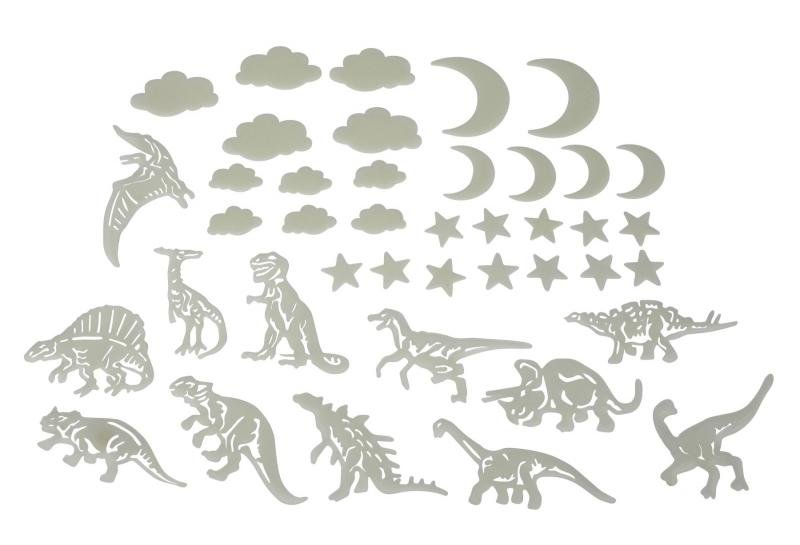 Sada dinosaurů a dalších obrázků, které po nasvícení ve tmě zpříjemňují usínání menším i větším dětem. Možno nalepit na stěnu, strop, nábytek apod. Obsahuje 40 ks. przeczytaj całość