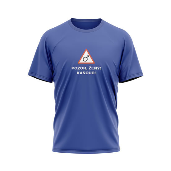 Tričko Pozor, ženy! Kaňour! - pánské M modré - Na sebe