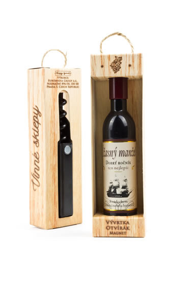 Vývrtka ve tvaru vinné lahve s originálním potiskem viněty je vhodným dárkem pro všechny milovníky vína. Užijte si svoji chvilku v dobré společnosti! Vývrtka s magnetem pro uchycení na lednici je balena v dárkové krabičce. Rozměr 12,5 x 3,5 x 2,5 cm. przeczytaj całość