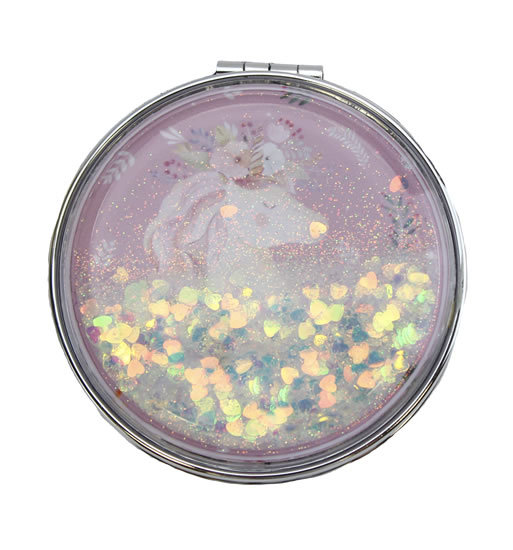 Zavírací zrcátko Happy Spirit s glitry. S normálním a zvětšovacím sklíčkem. Průměr 7 cm przeczytaj całość