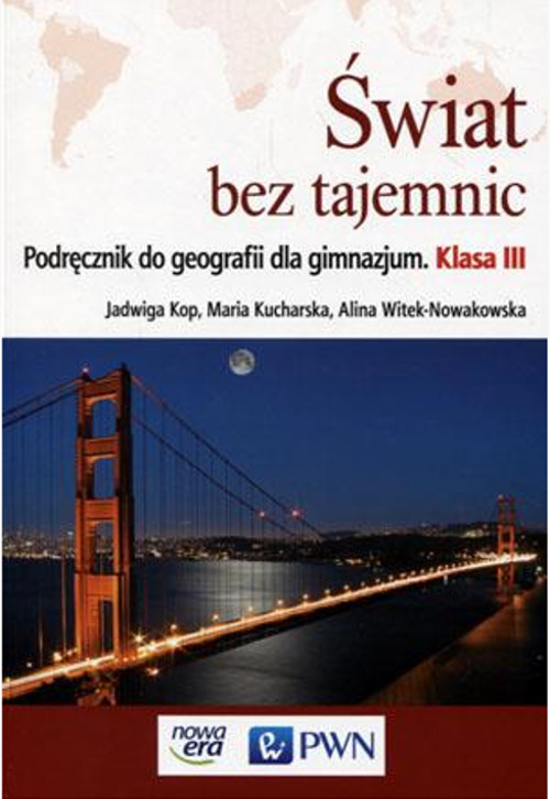 Podręcznik Świat bez tajemnic dla klasy 3 zawiera treści dotyczące geografii regionalnej świata.Kształci umiejętność analizy i interpretacji map tematycznych (mapy ze wskazaniami i opisami).Rozbudza zainteresowanie geografią (ciekawostki „Czy wiesz, że…”, duże, atrakcyjne fotografie).Ułatwia przygotowanie do sprawdzianów i egzaminu gimnazjalnego (podsumowanie lekcji „To musisz wiedzieć!”, „Zadania” na końcu lekcji).
