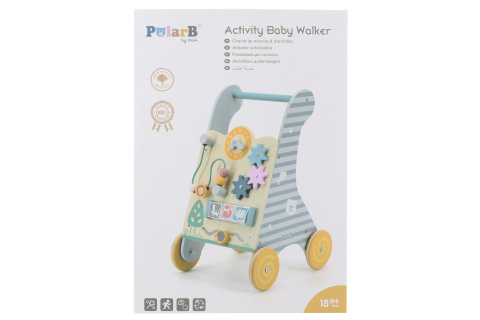 Chodzik został zaprojektowany tak, aby był solidny i stabilny, o wymiarach ok. 45 x 26,7 x 31 cm, co zapewnia dziecku wystarczające podparcie podczas pierwszych kroków. Zawiera różne nawlekanki, labirynt i obracające się zabawki, które wspierają sprawność manualną i jednocześnie pomagają utrzymać uwagę dziecka. Produkt przeznaczony jest dla dzieci od 18 miesięcy (18m+), czyli na okres, gdy maluch zaczyna stać i chodzić.