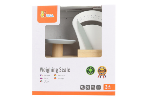 Drewniana waga o wymiarach ok. 18,5 x 20 x 8,5 cm. Wymiary opakowania ok. 20 x 21,5 x 10 cm. Wiek 3+ przeczytaj całość