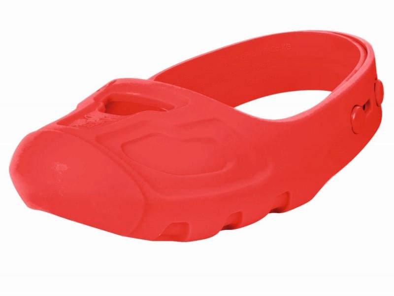 Ochranné návleky na botičky v červené barvě pro jízdu např. na odrážedle, cyklokole apod. Nezanechávají stopy na podlaze, protiskluzová úprava. Snadno nastavitelná velikost pomocí háčků a oček. Vhodné pro dětskou obuv velikosti 21-27. przeczytaj całość