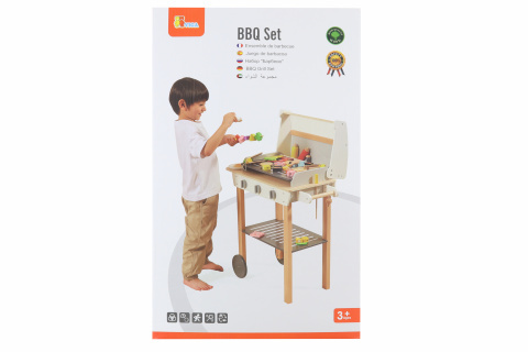 Dřevěný gril s doplňky. Balení obsahuje gril o velikosti cca 88,4 x 67,8 x 38,6 cm, jídlo, náčinní ke grilu a další doplňky. Rozměry balení cca 41 x 64,5 x 11 cm. Věk 3+ przeczytaj całość
