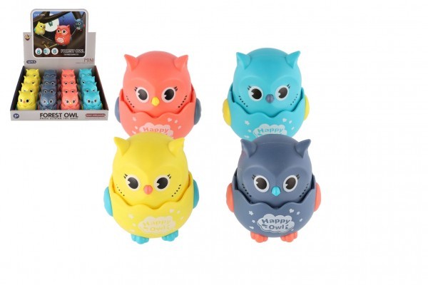 Sova plast 7x8cm mačkací jezdící 4 barvy 16ks v boxu