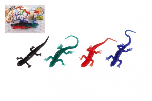 Ještěrka natahovací elastická měnící barvu 4ks na kartě 18x13x3cm