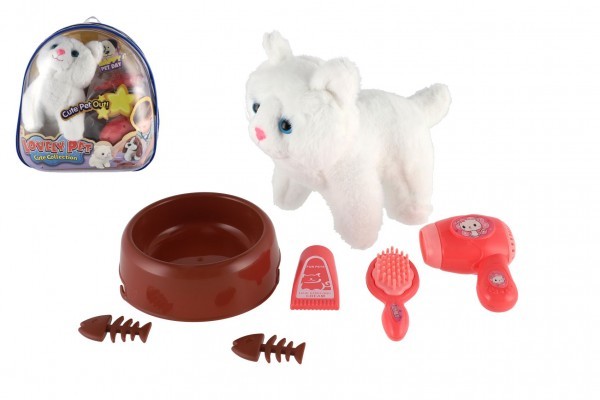 Kočka/Kočička se zvukem s doplňky plast/plyš v plastovém batůžku 22x25x11cm