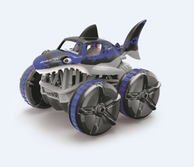 Auto na dálkové ovládání, které jezdí nejen po zemi, ale i po vodě. Ani neupravený terén mu nedělá problémy. Auto jezdí všemi směry a při jízdě mu barevně svítí kabina. Zadní ploutev se při jízdě ve vodě hýbe a vypadá to jako, když plave žralok. Nabíjení cca 4 hodiny, doba jízdy cca 20 minut. frekvence 2,4 Ghz. Auto dokáže stoupat až 45 stupňů. Umí rotace 360 stupňů na místě.
