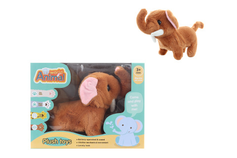 Chodzący słoń na baterie o wymiarach około 22x14x8,5 cm. Zasilanie: 2 baterie AA (nie są dołączone). Po włożeniu baterii słoń chodzi i trąbi. Materiał: plastik + plusz. Pakowany w pudełku. Wymiary opakowania około 22x18x9 cm. Wiek 3+ przeczytaj całość
