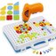 Ta edukacyjna zabawa polega na wkręcaniu kolorowych śrubek w płytkę przy użyciu wkrętarki zasilanej bateriami lub śrubokrętu. Dzieci mogą tworzyć barwne obrazki i wzory, co wspiera ich kreatywność i jednocześnie pozwala zdobywać podstawowe umiejętności praktyczne. Zestaw zawiera 151 elementów, które są wygodnie przechowywane w praktycznej walizce, dzięki czemu wszystko można łatwo przenosić i przechowywać.