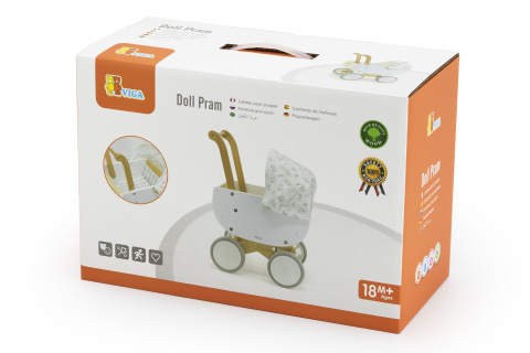 Drewniany głęboki wózek został zaprojektowany tak, aby był nie tylko ładny, ale i funkcjonalny. Posiada materiałowy daszek, którym można wygodnie poruszać, co bawi dzieci i jednocześnie wspiera ich motorykę oraz koncentrację podczas zabawy. Wózek jest na tyle duży, że jego wymiary wynoszą 38,5 × 29,5 × 54 cm, dlatego nadaje się dla lalek i pluszowych przyjaciół, natomiast opakowanie ma praktyczny rozmiar 40 × 27,5 × 19 cm. Idealna zabawka dla dzieci od 18 miesięcy, wspierająca rozwój troski i empatii.