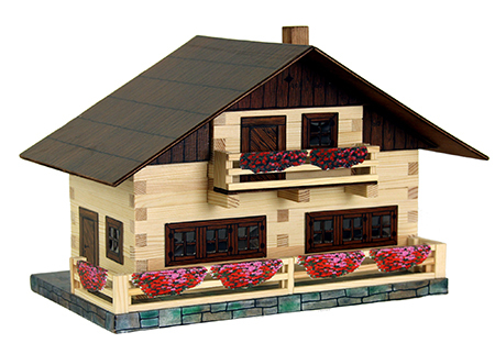 Dřevěná slepovací stavebnice obsahuje dřevěné hranolky daných délek ke stavbě roubených stěn, díly na střechy a štíty, kartonové výseky oken a dveří i předtištěné papírové potisky. Součástí stavebnice je schematický montážní plán.