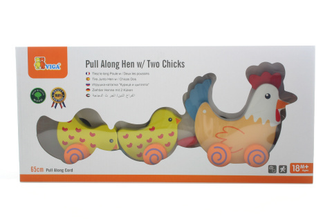 Dřevěná tahačka slepička s kuřátky. Rozměry hračky cca 36 x 14,5 x 5,5 cm. Rozměry balení cca 42 x 6,5 x 19,5 cm. Věk 18m+ przeczytaj całość