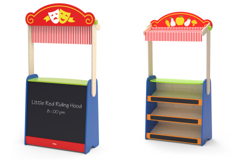 Tato vysoce kvalitní hračka je kombinací divadla a obchodu s potravinami. Když si dítě hraje divadlo, lze oponu složit a téma příběhu lze napsat na černou tabuli. Když si dítě hraje na obchod s potravinami, může na černou tabuli napsat také název a ceny potravin. Potraviny nejsou součástí balení. Rozměry cca 125 x 66 x 29 cm. Rozměry balení cca 52 x 67 x 6 cm. Věk 3+