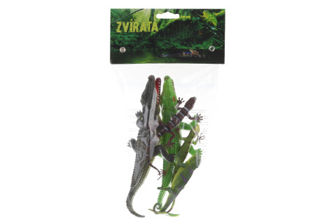 Plastikowe zwierzątka - gady (2x, krokodyl, 2x jaszczurka, kameleon). Wymiary opakowania: ok. 15 x 28 x 5 cm. Rozmiar zwierzątek: ok. 9 - 19 cm (w zależności od gatunku). Wiek 3+ przeczytaj całość