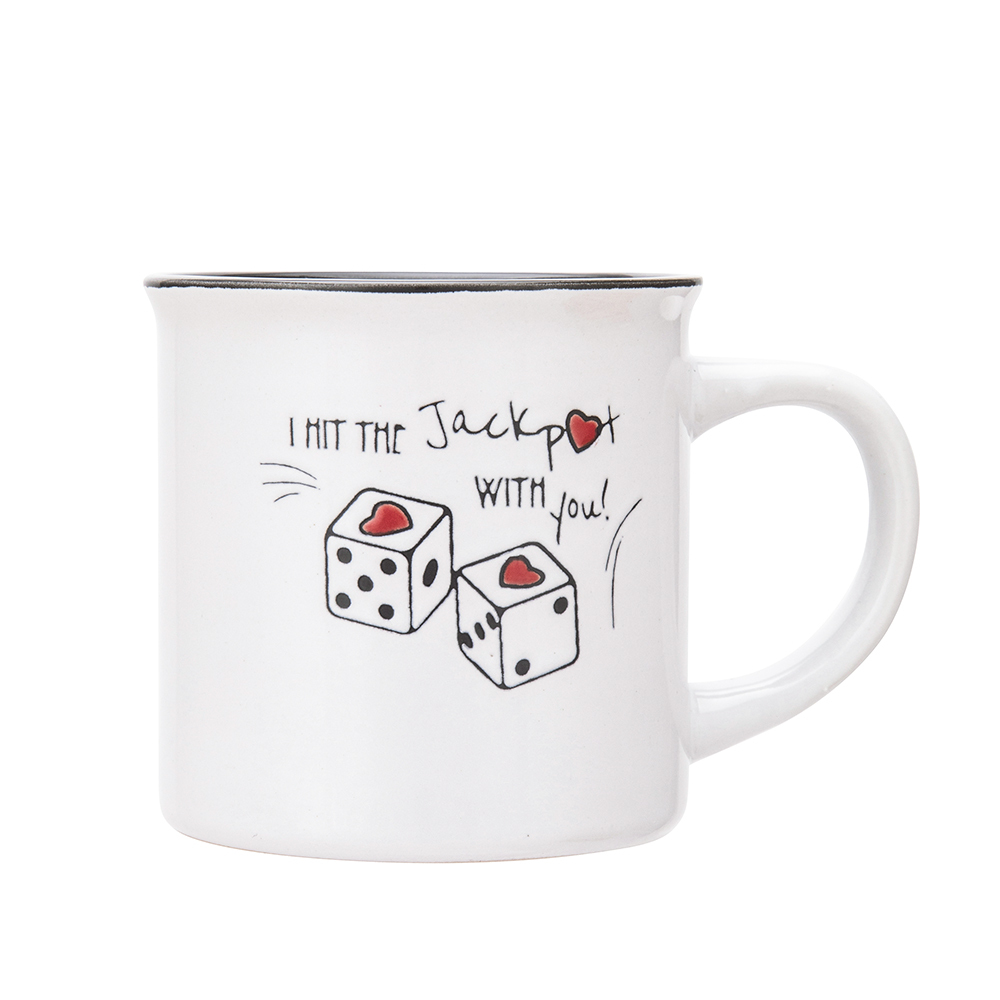 KUBEK PORCELITOWY Z WYWINIĘTYM RANTEM 320 ML DEK. JACKPOT