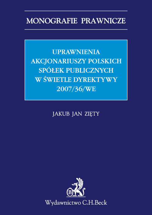 Monografia jest efektem projektu badawczego finansowanego przez NCN. Zasadniczym celem zaprezentowanych w publikacji badań jest udzielenie odpowiedzi na pytanie: czy implementacja dyrektywy 2007/36/WE Parlamentu Europejskiego i Rady z 11.7.2007 r. w sprawie wykonywania niektórych praw...