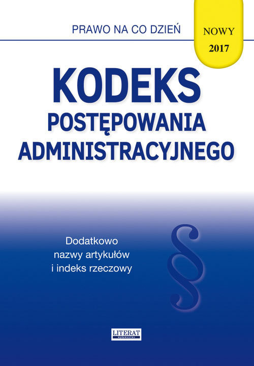 Najnowszy kodeks (stan prawny na dzień 22 czerwca 2017 r.) wygodny kieszonkowy format, artykuły opatrzone nazwami z wyjaśnieniem ich sensu, indeks rzeczowy ułatwiający wyszukiwanie zagadnień.Uwzględniono zmiany wprowadzone ustawą z dnia 7 kwietnia 2017 r. o zmianie ustawy Kodeks postępowania administracyjnego oraz niektórych innych ustaw (Dz.U. z 2017 r. poz. 935).