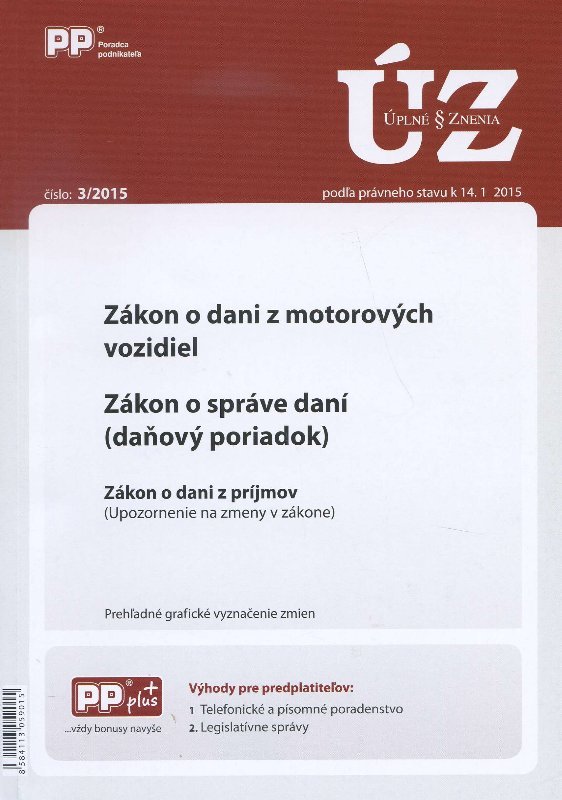UZZ 3/2015 Zákon o dani z motorových vozidiel. Zákon o správe daní (daňový poriadok)