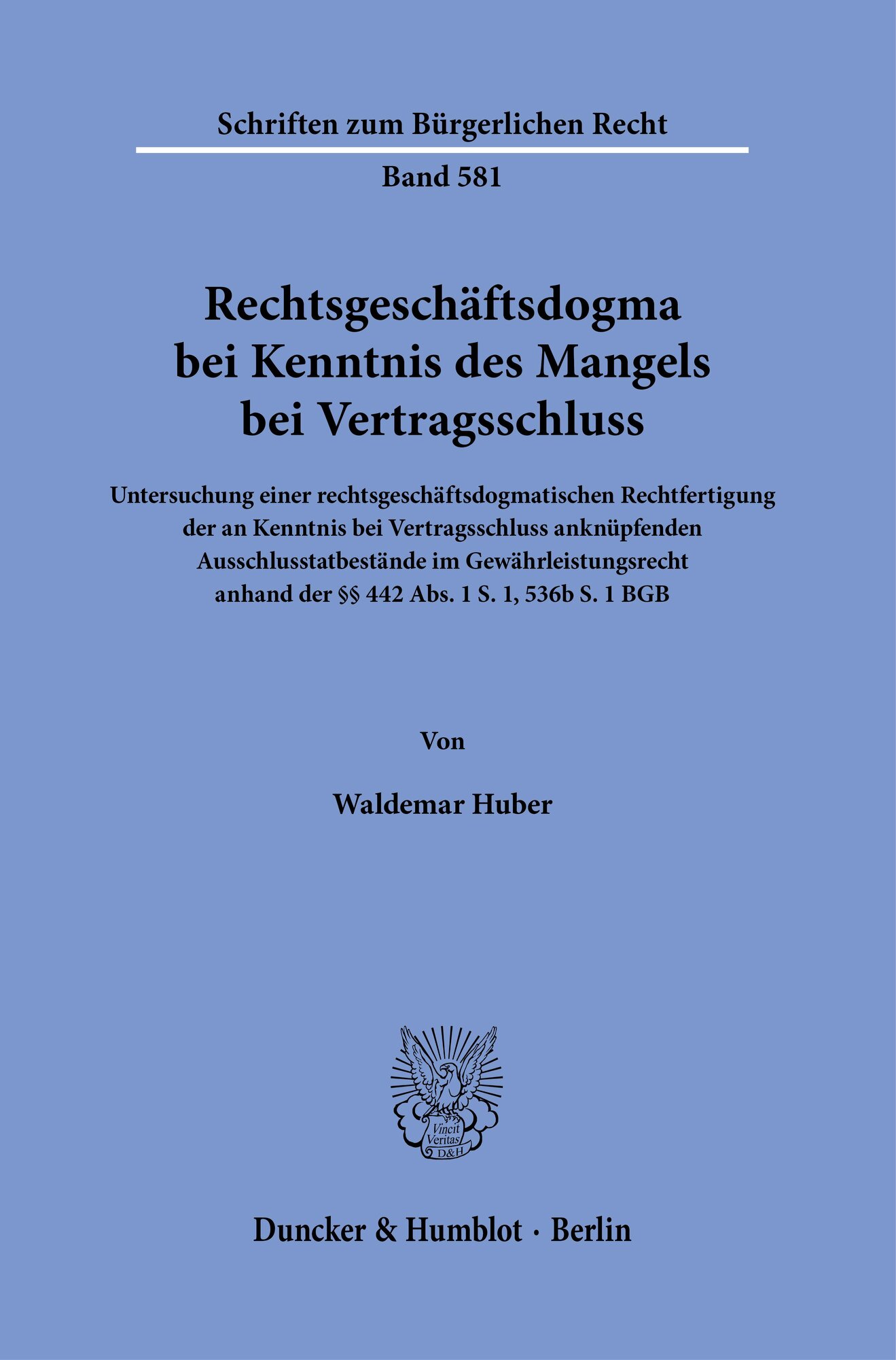 Rechtsgeschäftsdogma bei Kenntnis des Mangels bei Vertragsschluss (niemiecki)