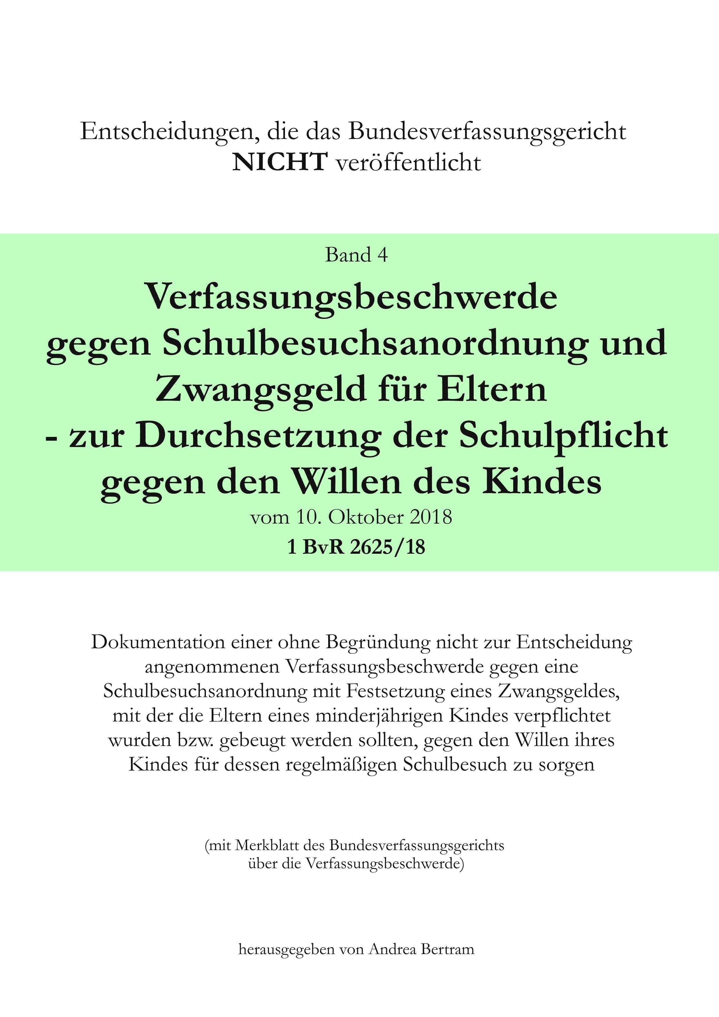 Verfassungsbeschwerde gegen Schulbesuchsanordnung und Zwangsgeld für Eltern - zur Durchsetzung der Schulpflicht gegen den Willen (niemiecki)