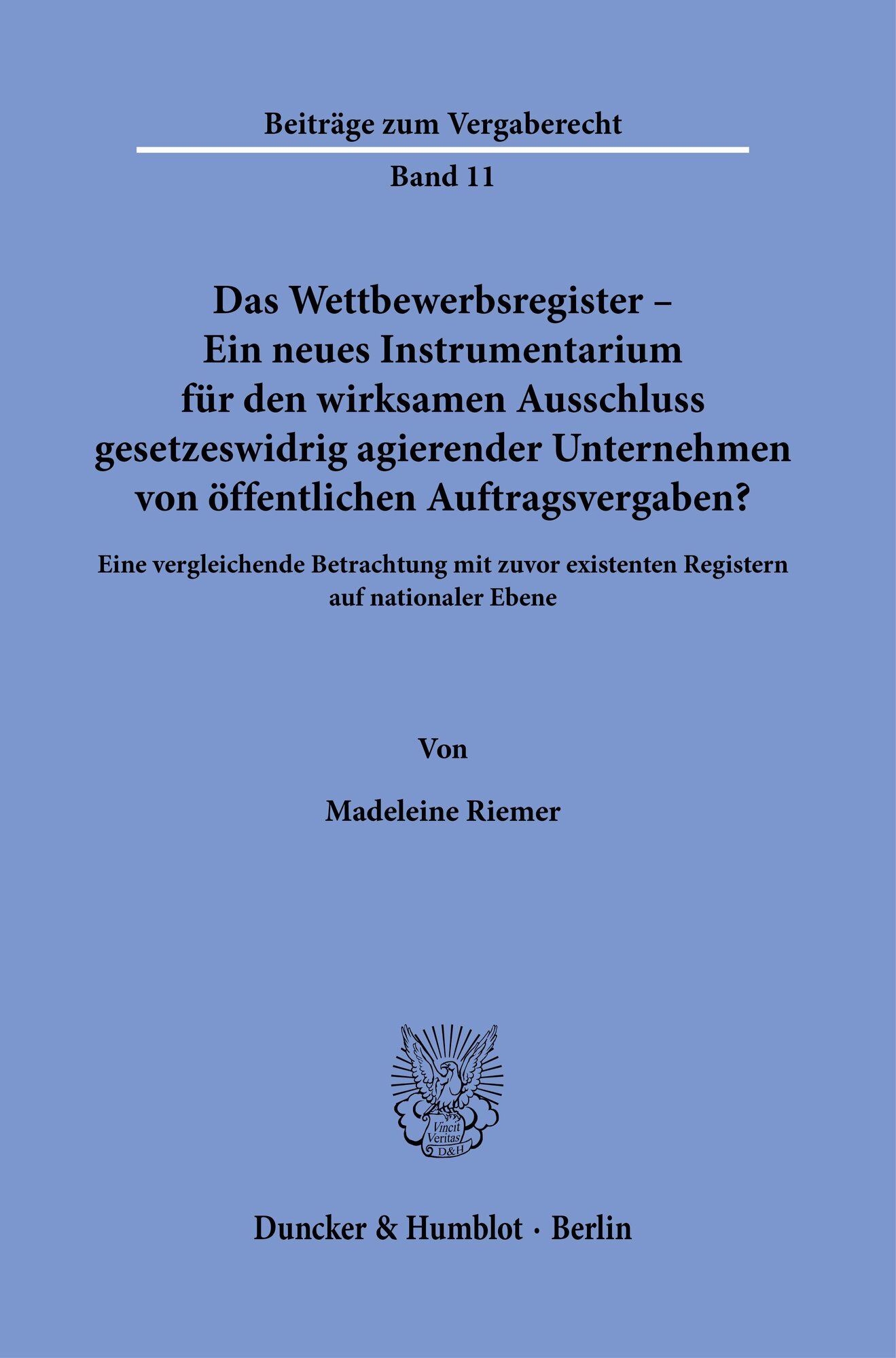 Das Wettbewerbsregister - Ein neues Instrumentarium für den wirksamen Ausschluss gesetzeswidrig agierender Unternehmen von öffen (niemiecki)