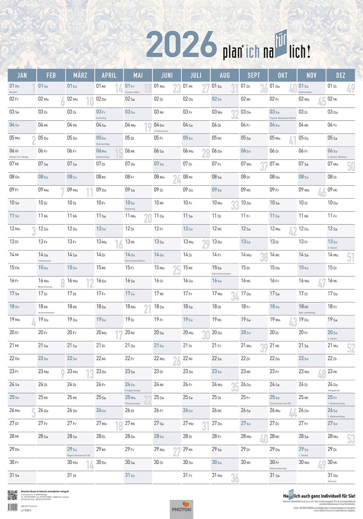 · Photon, Verlag · 2025 · kalendarz · 1 stron