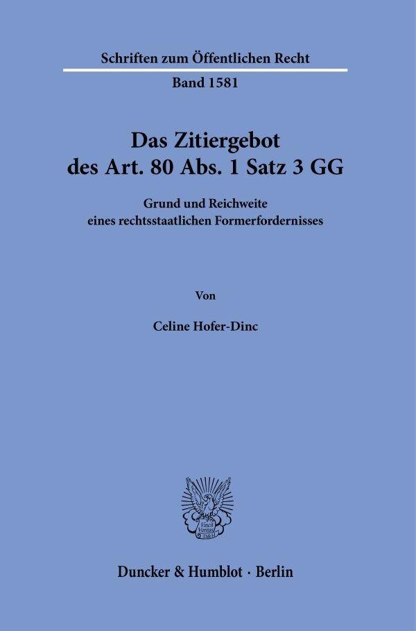 Das Zitiergebot des Art. 80 Abs. 1 Satz 3 GG (niemiecki)