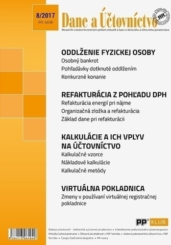 Publikácia obsahuje nasledovné témy: Oddlženie fyzickej osoby z daňového pohľadu, Oznamovacia povinnosť po vykonaní korešpondujúcej úpravy základu dane + test, Výdavky na bezpečnosť a ochranu zdravia pri práci, Refakturácia, Kalkulácie a ich vplyv na účtovníctvo,... przeczytaj całość