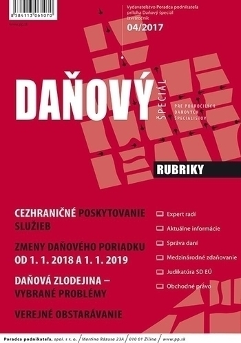 Publikácia obsahuje nasledovné témy: Povinnosti spoločnosti pri cezhraničnom poskytovaní služieb v rámci Českej republiky, Navrhované zmeny daňového poriadku od 1. 1. 2018 a od 1. 1. 2019, Vládne opatrenia na zlepšenie podnikateľského prostredia, Daňová zlodejina,... przeczytaj całość
