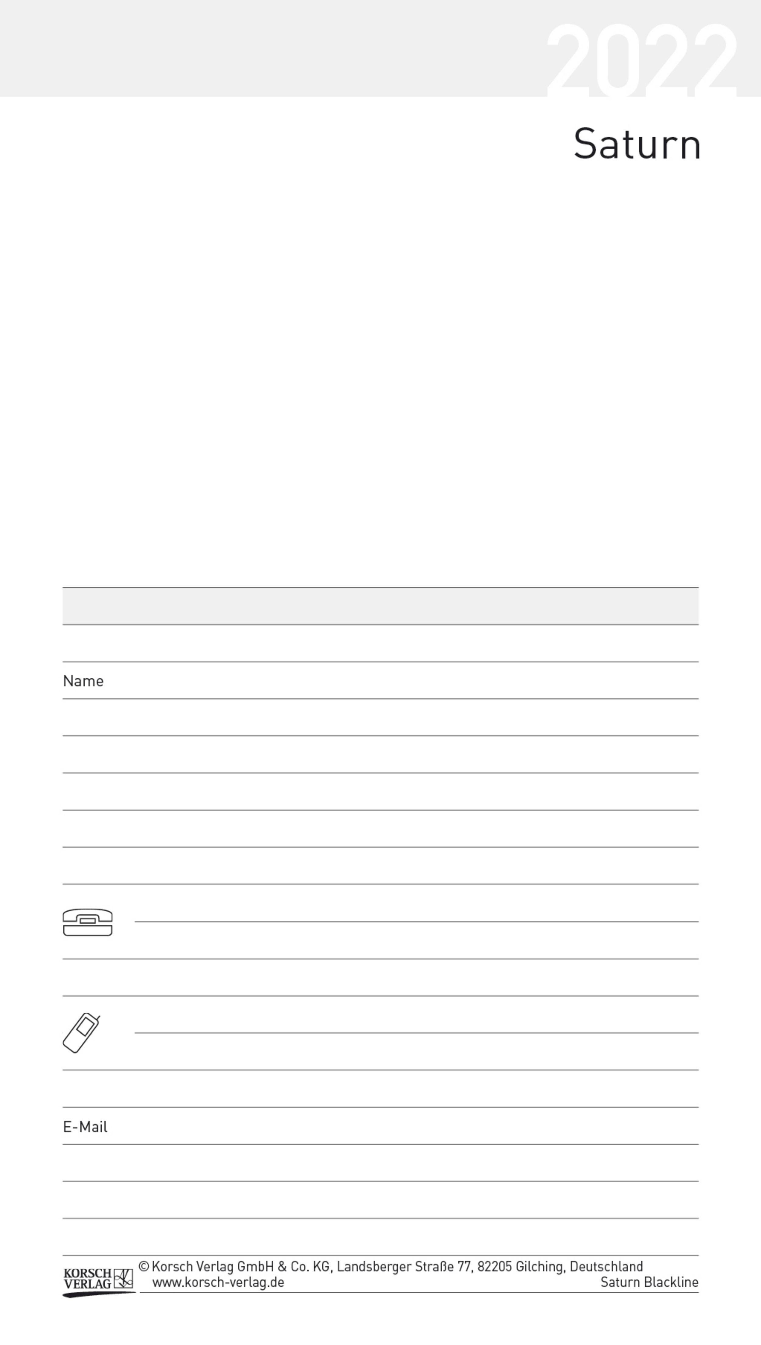 Taschenkalender Saturn Leporello Einlage 2022