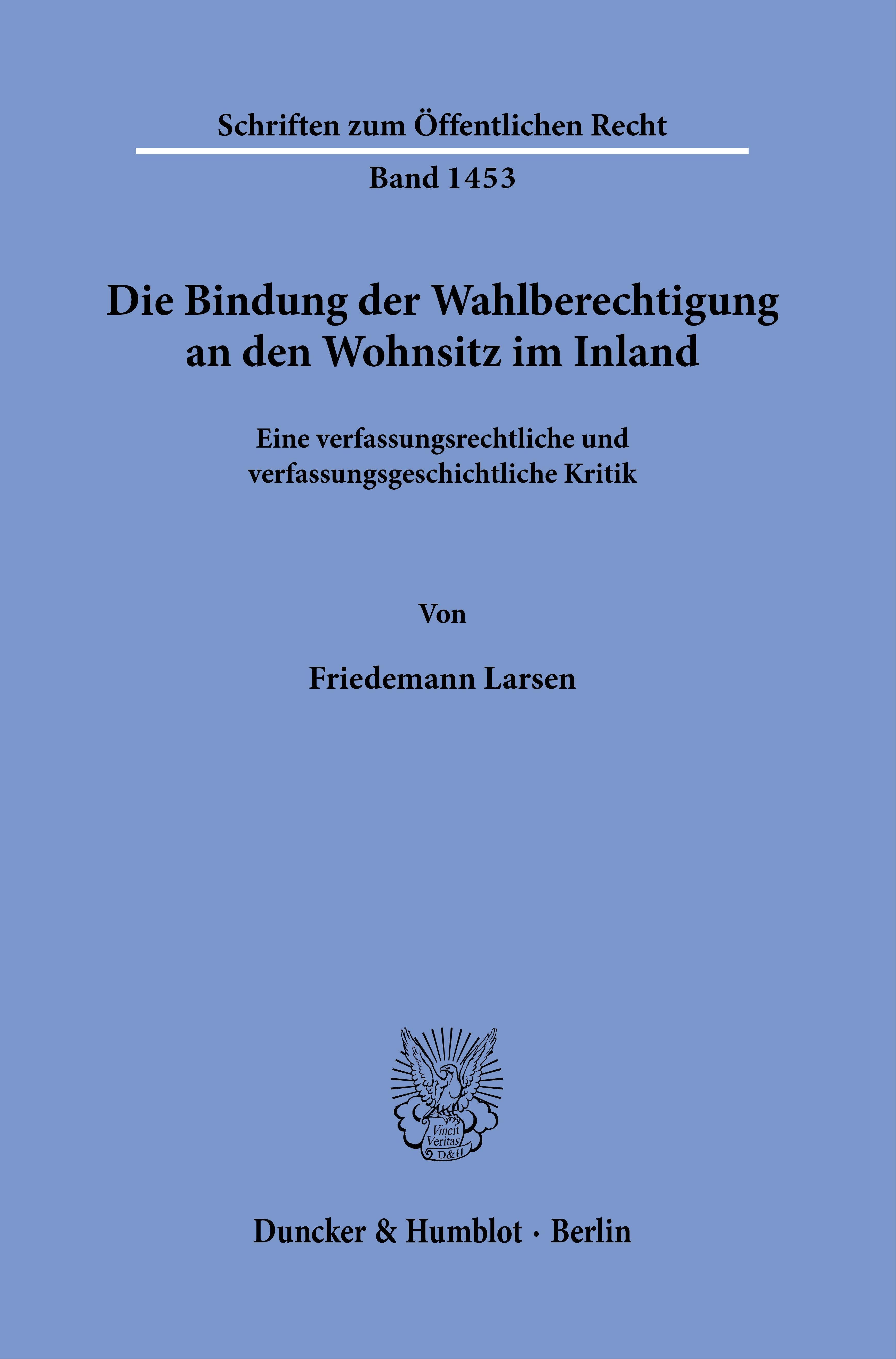 Die Bindung der Wahlberechtigung an den Wohnsitz im Inland. (niemiecki)